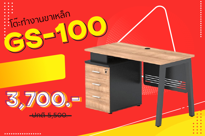 โต๊ะทำงานขาเหล็กพร้อมตู้ลิ้นชัก