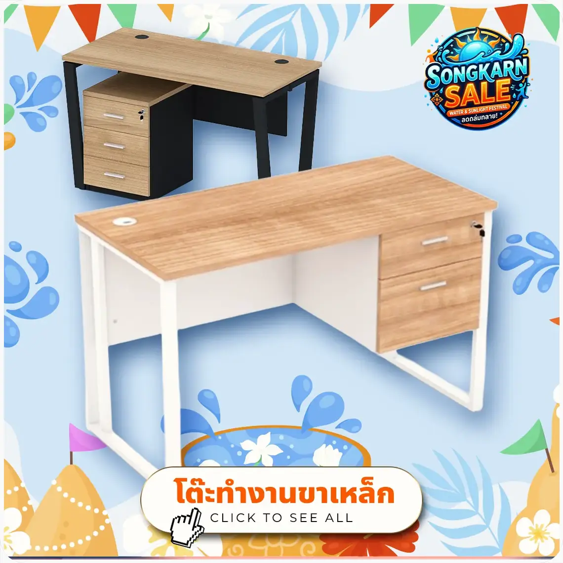 เซ็ตโต๊ะทำงานขาเหล็ก