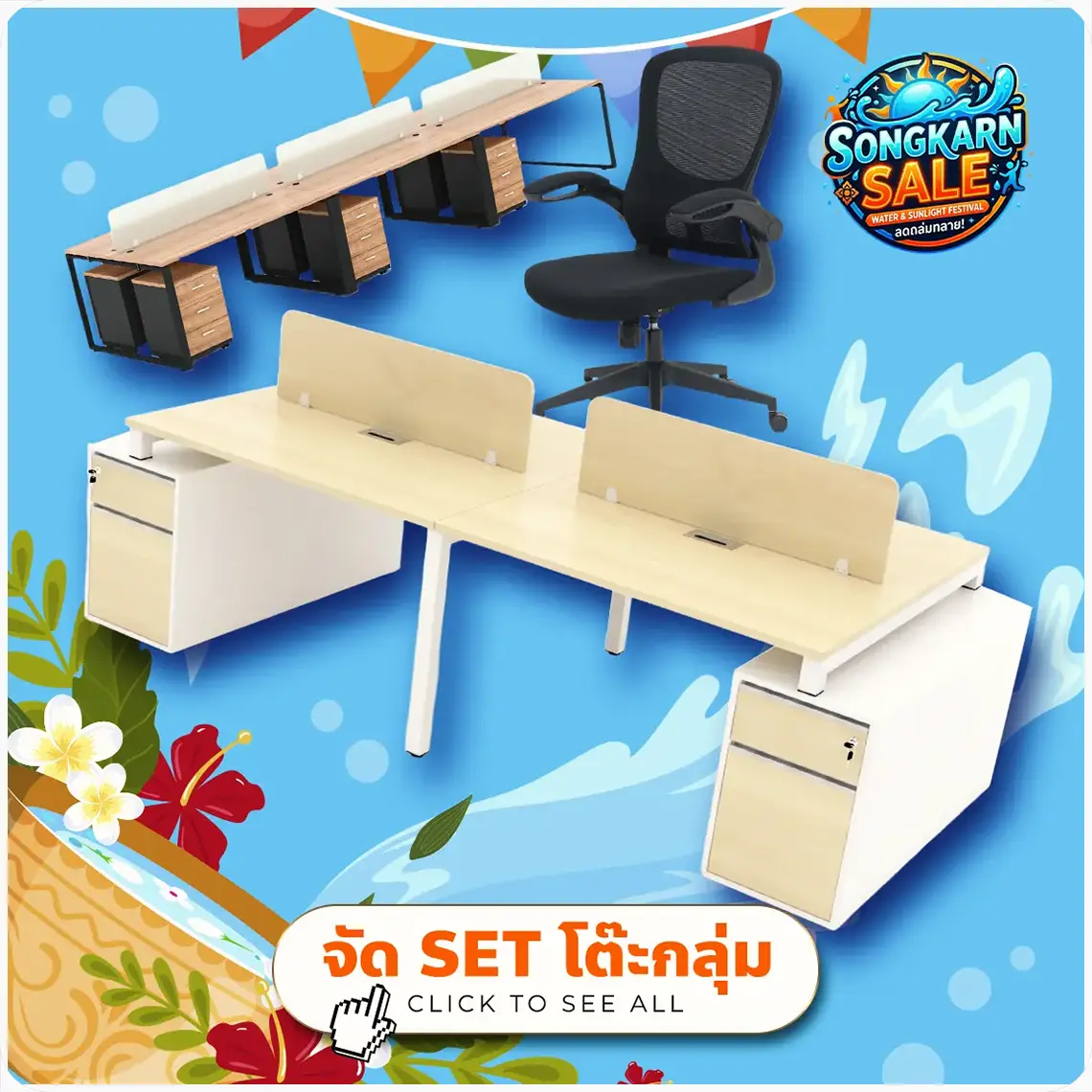เซ็ตโต๊ะทำงานกลุ่ม + เก้าอี้ทำงาน