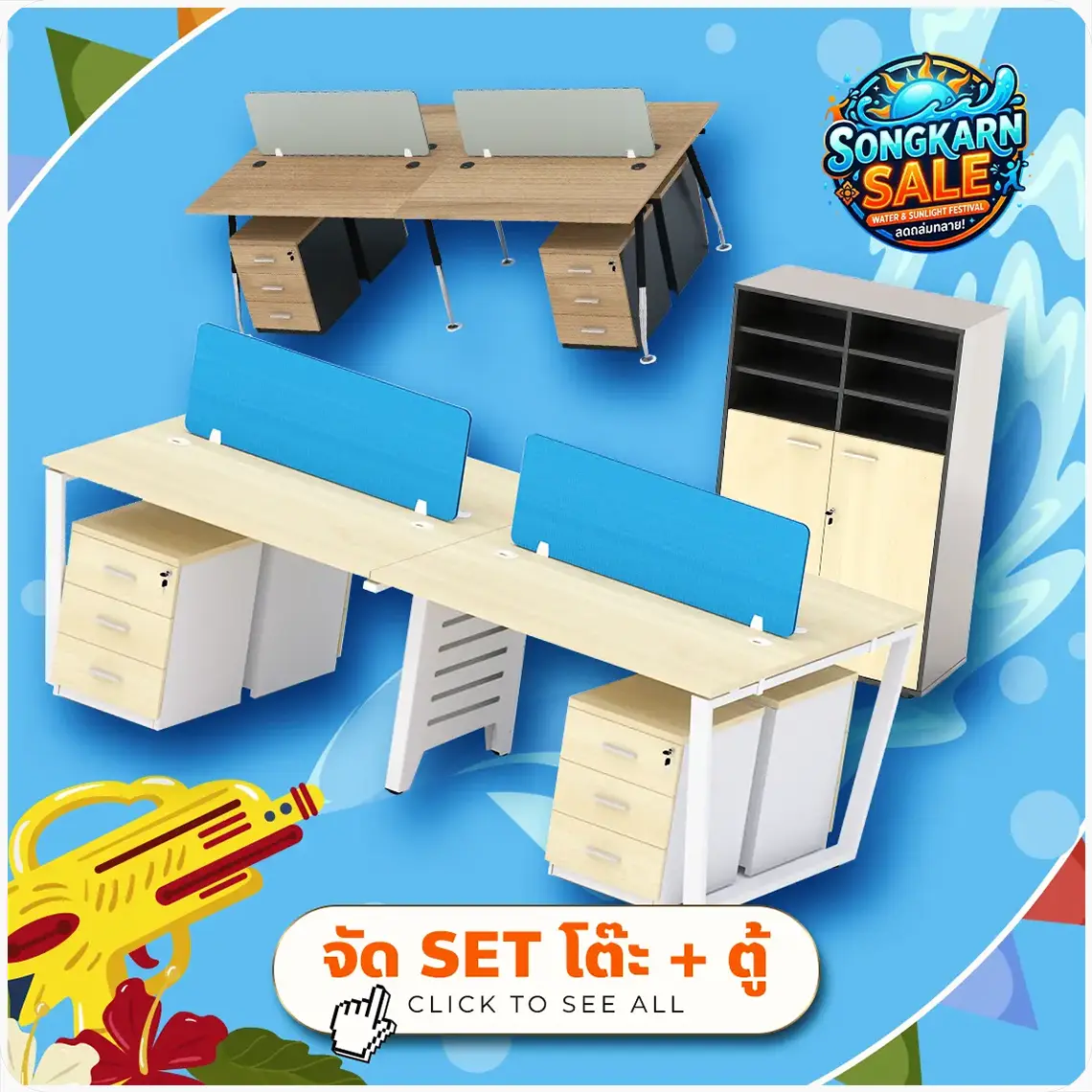 เซ็ตโต๊ะทำงานกลุ่ม + ตู้เอกสาร