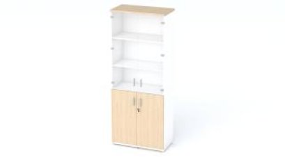 DS-CBM206 ตู้เก็บเอกสารไม้ 4 ชั้น ด้านล่างบานเปิดไม้ ด้านบนกระจก