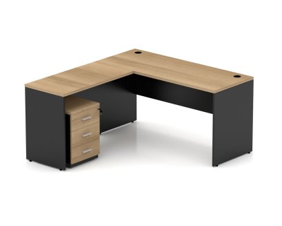 DS-WDL62 โต๊ะทำงานตัวแอลขาไม้ พร้อมตู้ลิ้นชักล้อเลื่อน ผลิตได้ทุกขนาด