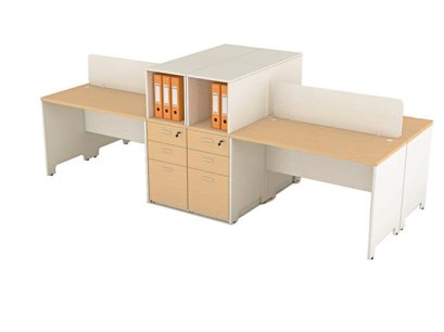 โต๊ะทำงานกลุ่ม 4 ที่นั่ง พร้อมตู้ข้างโต๊ะ สวยทันสมัย