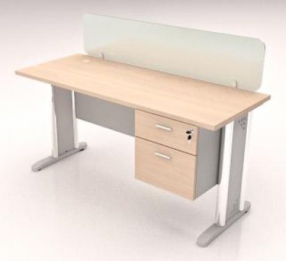 DS-WS112 โต๊ะทำงานขาเหล็กกลุ่มสำหรับ 2 ที่นั่ง พร้อมฉากกั้นกระจกขัดลาย