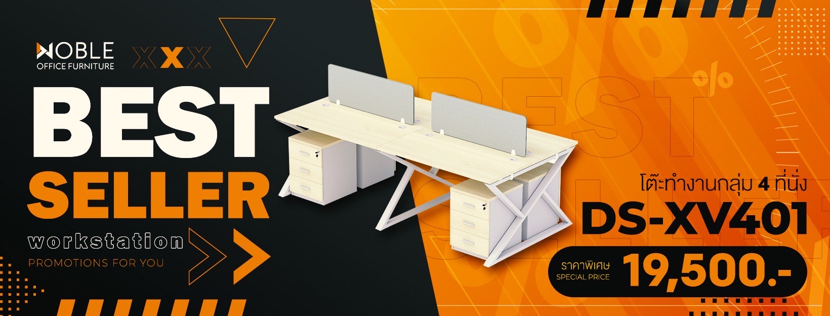 MiX-40 โต๊ะทำงานกลุ่ม 4 ที่นั่ง พร้อมฉากกั้นและตู้ลิ้นชัก ลดราคาพิเศษ