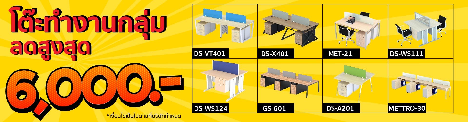 NS-620 โต๊ะทำงานกลุ่ม 6 ที่นั่ง พร้อมแผงกั้นทึบครึ่งกระจกใส
