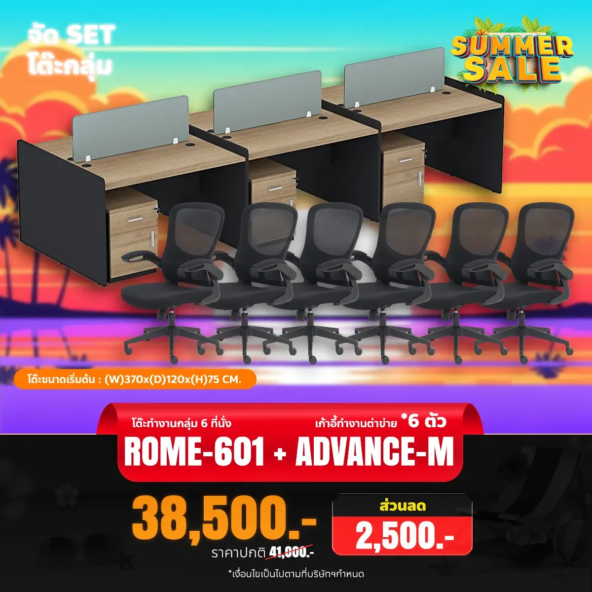 โต๊ะทำงานกลุ่ม 6 ที่นั่ง รุ่น ROME-601 พร้อมตู้ลิ้นชักและฉากกั้น