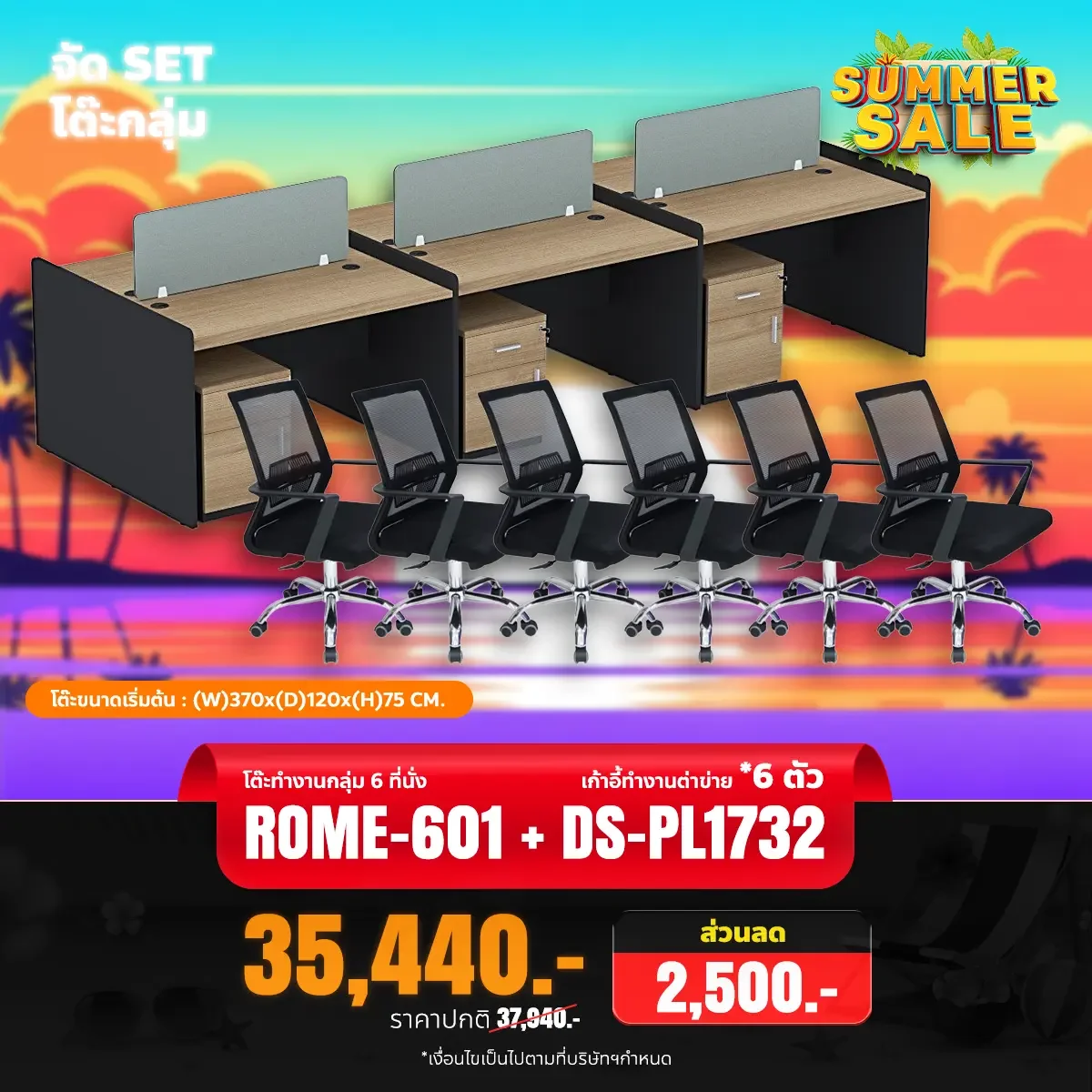 โต๊ะทำงานกลุ่ม 6 ที่นั่ง รุ่น ROME-601 พร้อมตู้ลิ้นชักและฉากกั้น