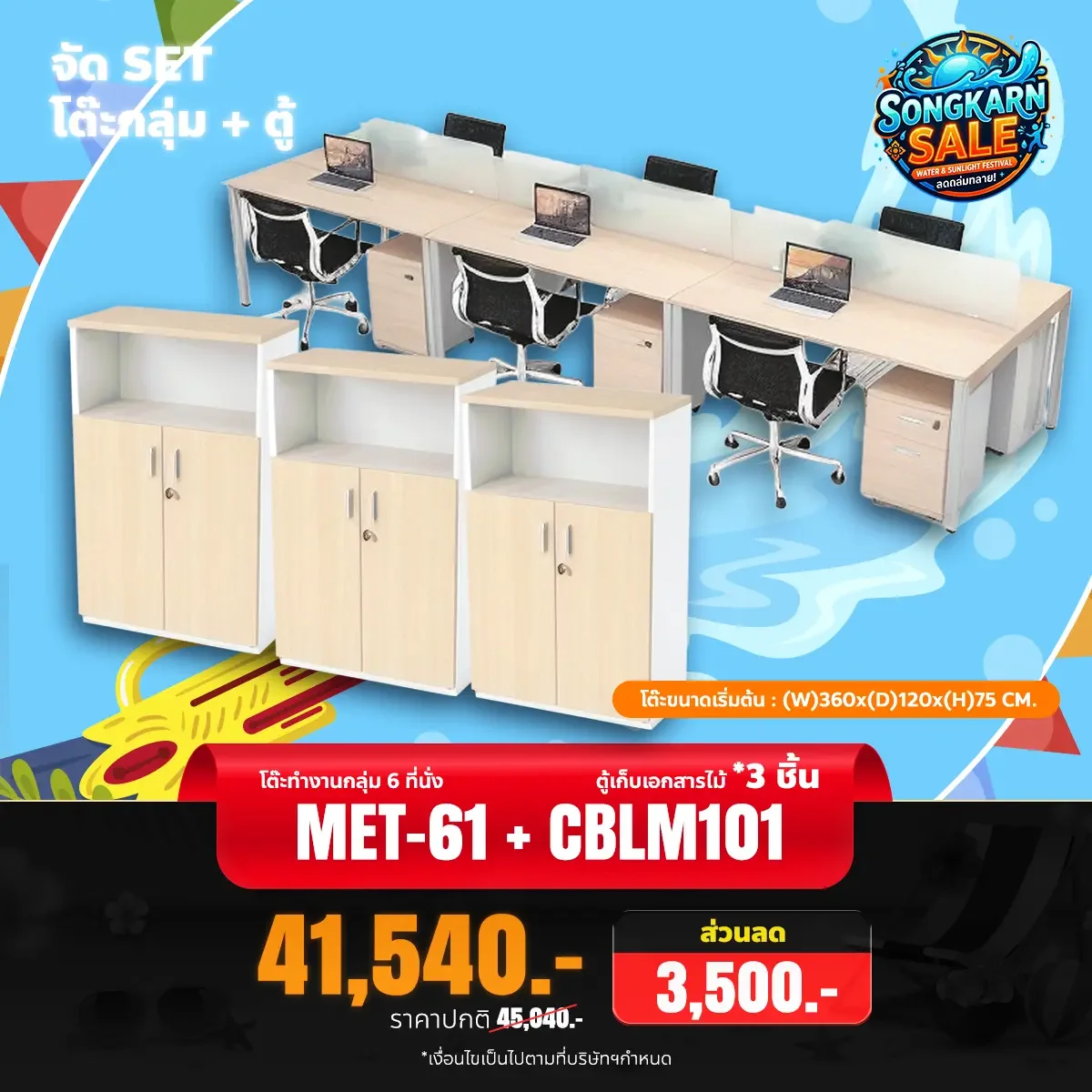 ชุดเซ็ตโต๊ะทำงานกลุ่ม 6 ที่นั่ง พร้อมตู้เอกสาร 3 ใบ