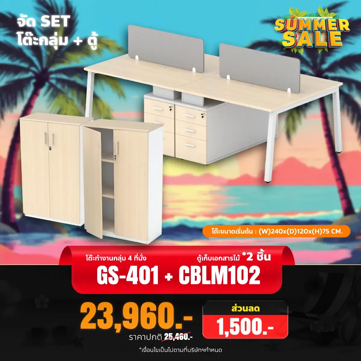 หมวดหมู่ : เซ็ตโต๊ะทำงานกลุ่ม + ตู้ ,