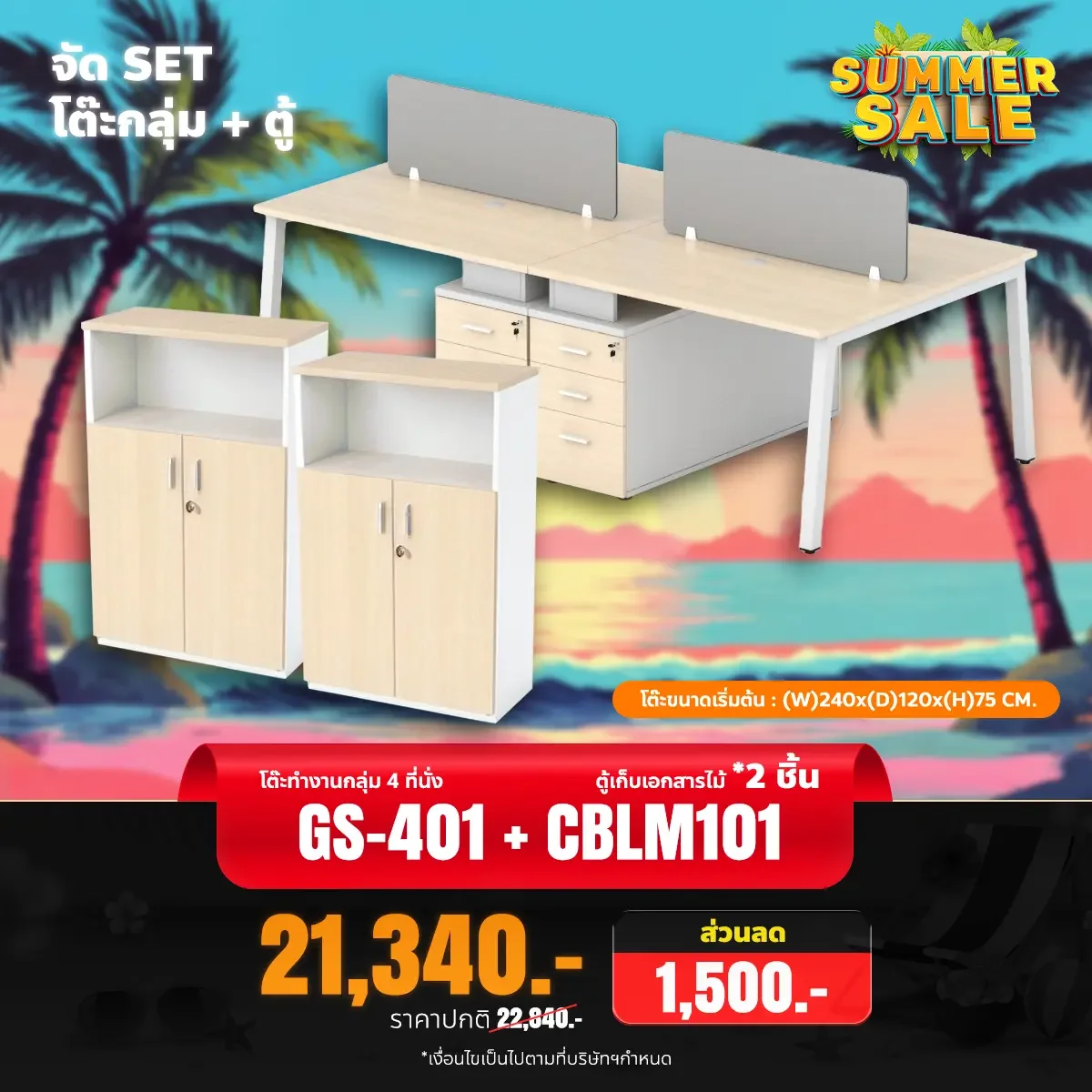 หมวดหมู่ : เซ็ตโต๊ะทำงานกลุ่ม + ตู้ ,