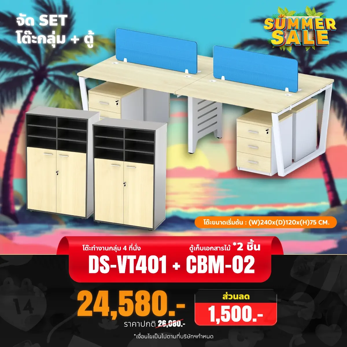 หมวดหมู่ : เซ็ตโต๊ะทำงานกลุ่ม + ตู้ ,