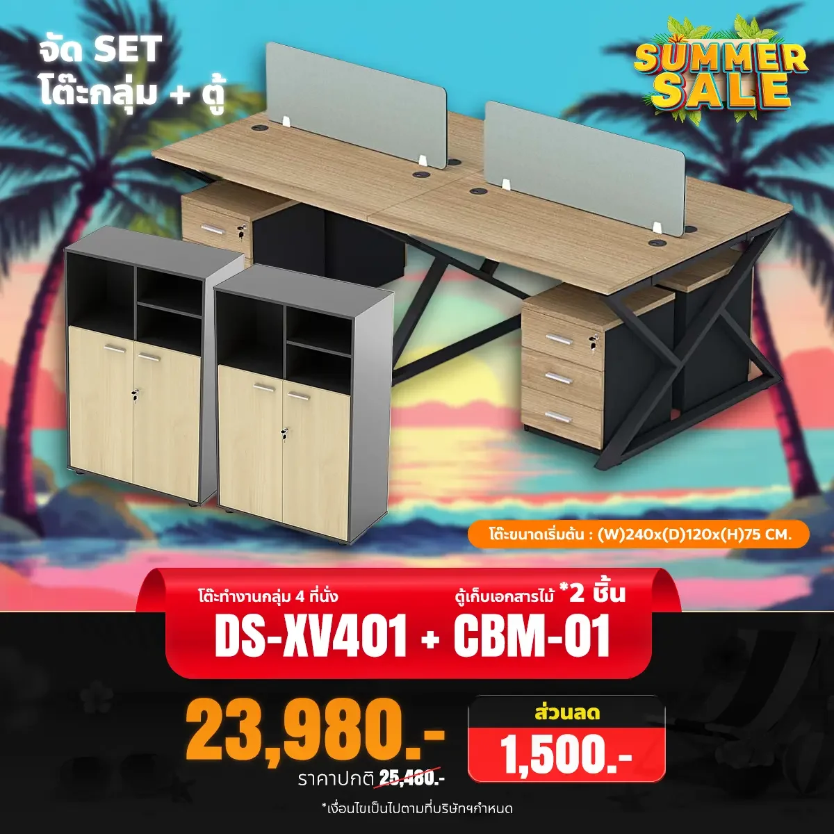 โต๊ะทำงานกลุ่ม 4 ที่นั่ง รุ่น DS-XV401 พร้อมตู้ลิ้นชักและฉากกั้น