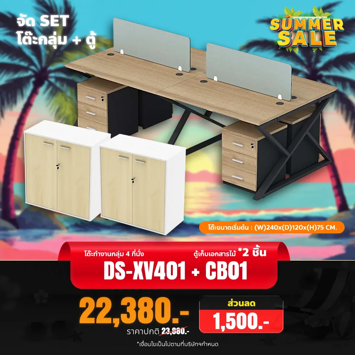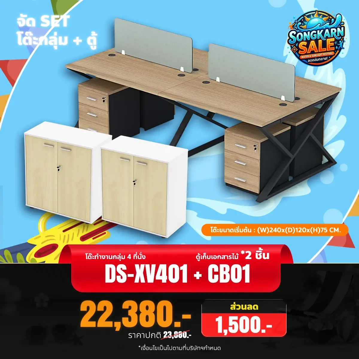 โต๊ะทำงานกลุ่ม 4 ที่นั่ง รุ่น DS-XV401 พร้อมตู้ลิ้นชักและฉากกั้น