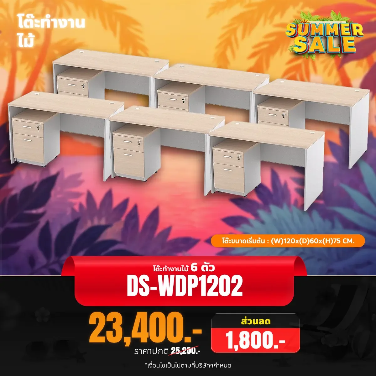 ชุดเซ็ตโต๊ะทำงานไม้ 6 ตัว