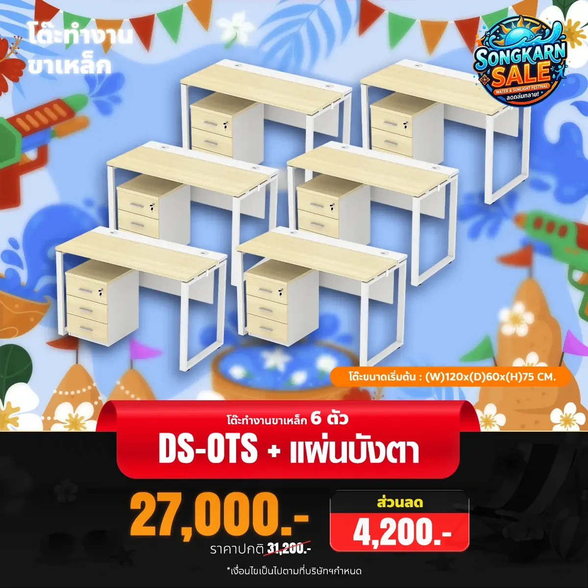 - ขนาดโต๊ะ ก120 x ล60 x ส75 ซม.