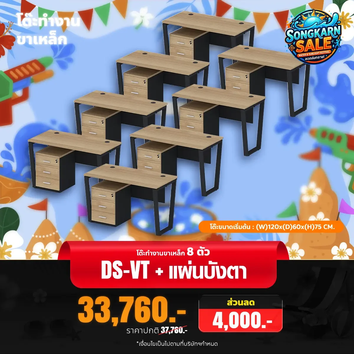 ชุดเซ็ตโต๊ะทำงานไม้ขาเหล็ก 8 ตัว