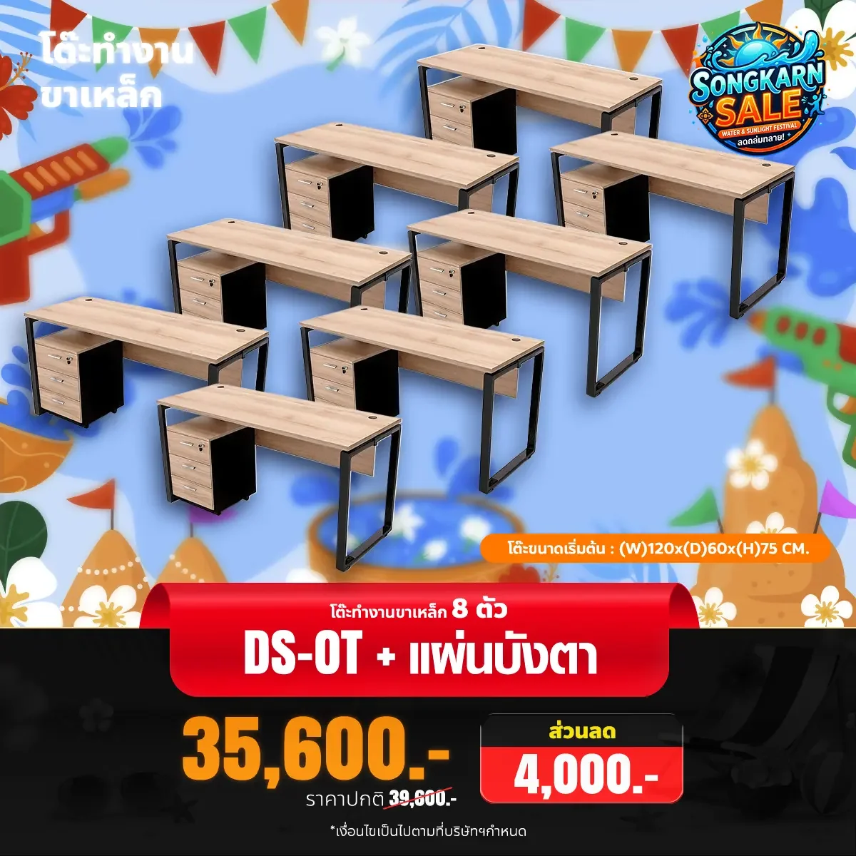 ชุดเซ็ตโต๊ะทำงานไม้ขาเหล็ก 8 ตัว