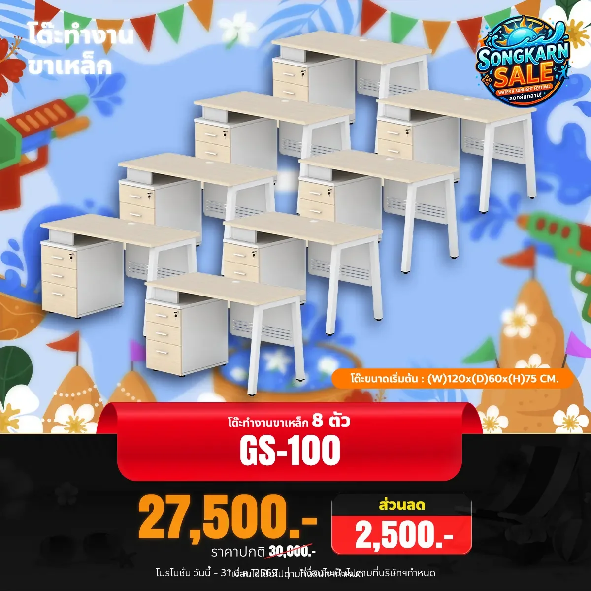 ชุดเซ็ตโต๊ะทำงานไม้ขาเหล็ก 8 ตัว