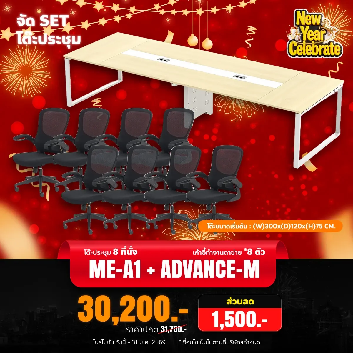 - ขนาดโต๊ะ ก300 x ล120 x ส75 ซม.