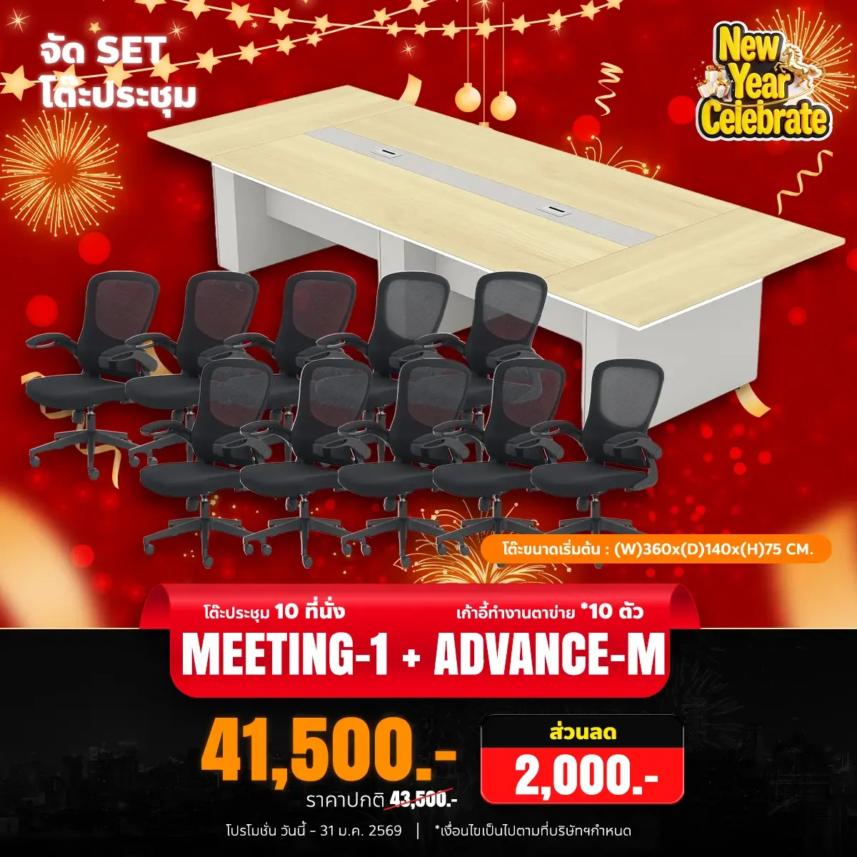 ชุดเซ็ตโต๊ะประชุม พร้อมเก้าอี้ 10 ตัว